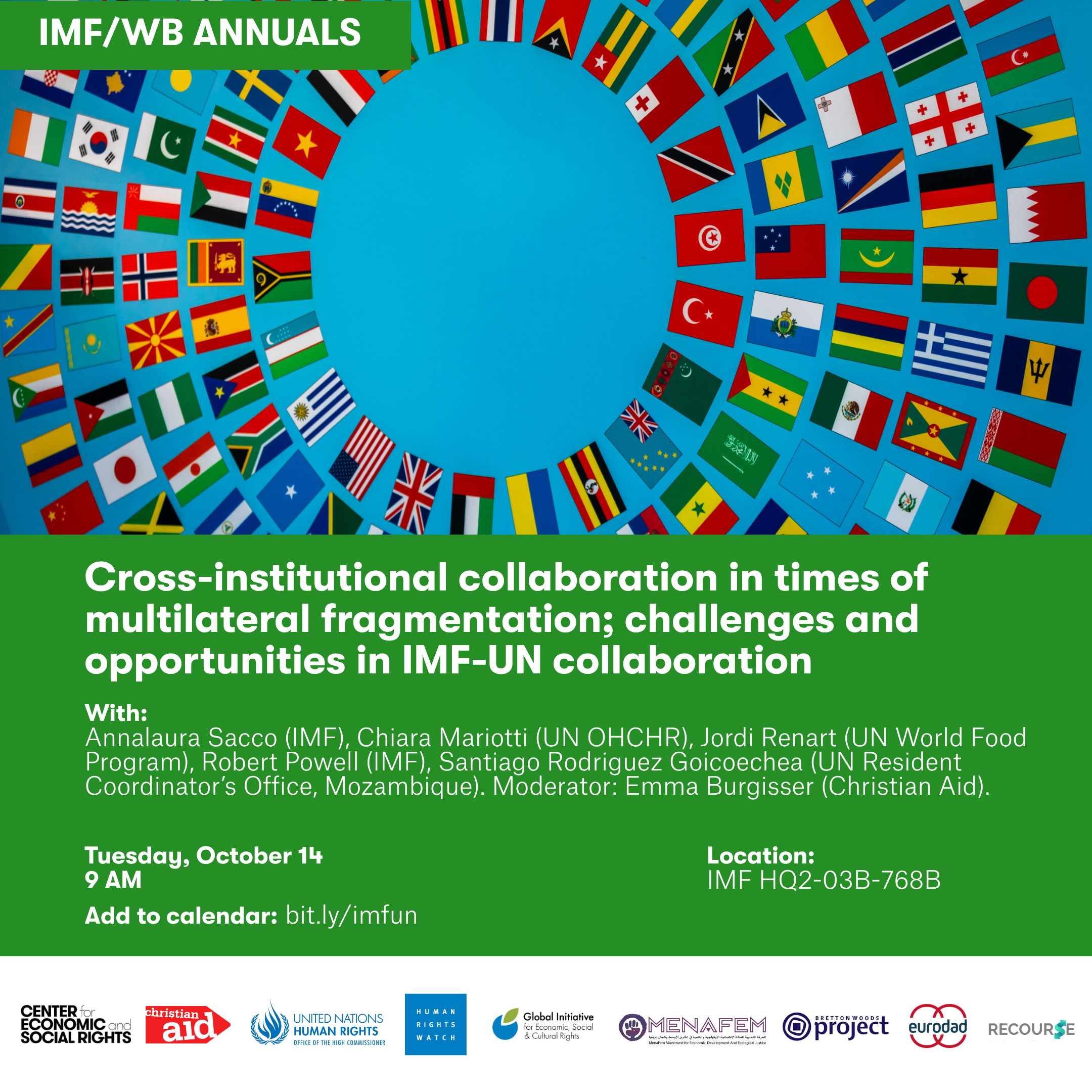 Organizers: Christian Aid, Human Rights Watch, CESR, Global Initiative for Economic, Social and Cultural Rights, OHCHR, MenaFem, Bretton Woods Project, Eurodad, Recourse.