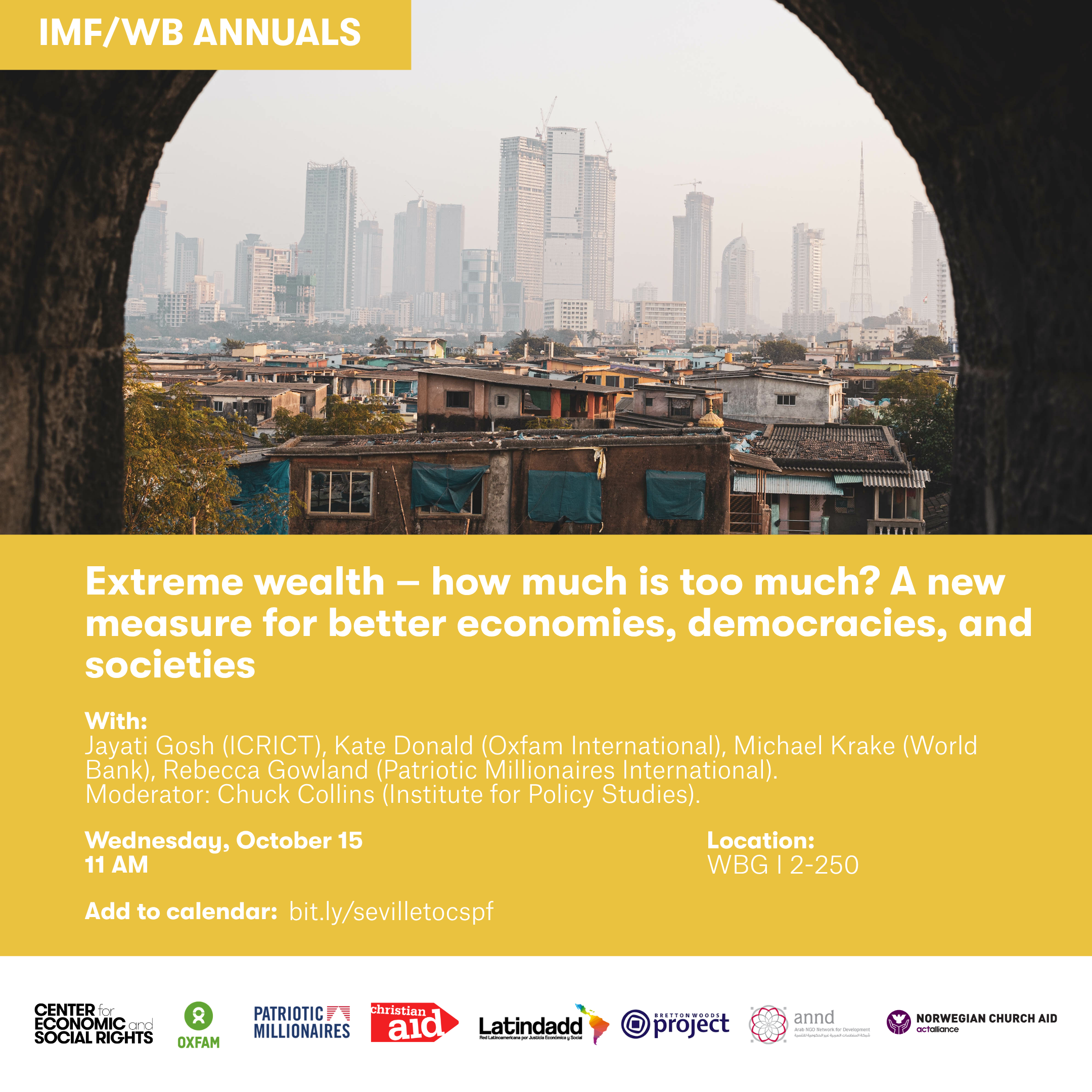 Organizers: Oxfam International, Patriotic Millionaires, ITUC, MenaFem, CESR, Christian Aid, Latindadd, Bretton Woods Project, ICRICT, ANND, Norwegian Church Aid.