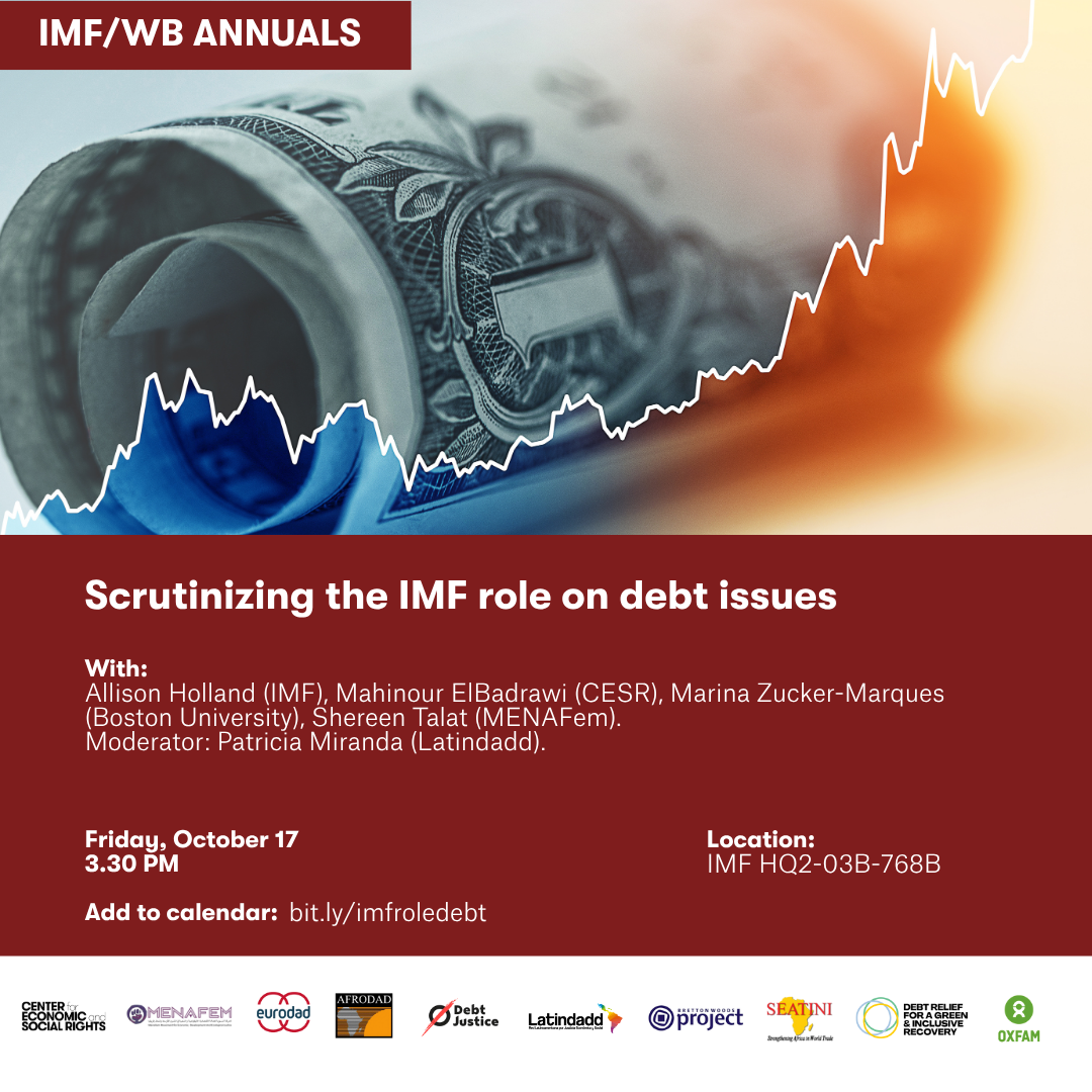 Organizers: Eurodad, Latindadd, MENA Fem, SEATINI Uganda, Jubilee USA, AFRODAD, APMDD, Recourse, CESR, DRGR Project, Debt Justice UK, Oxfam, Bretton Woods Project, Debt Justice Norway.
